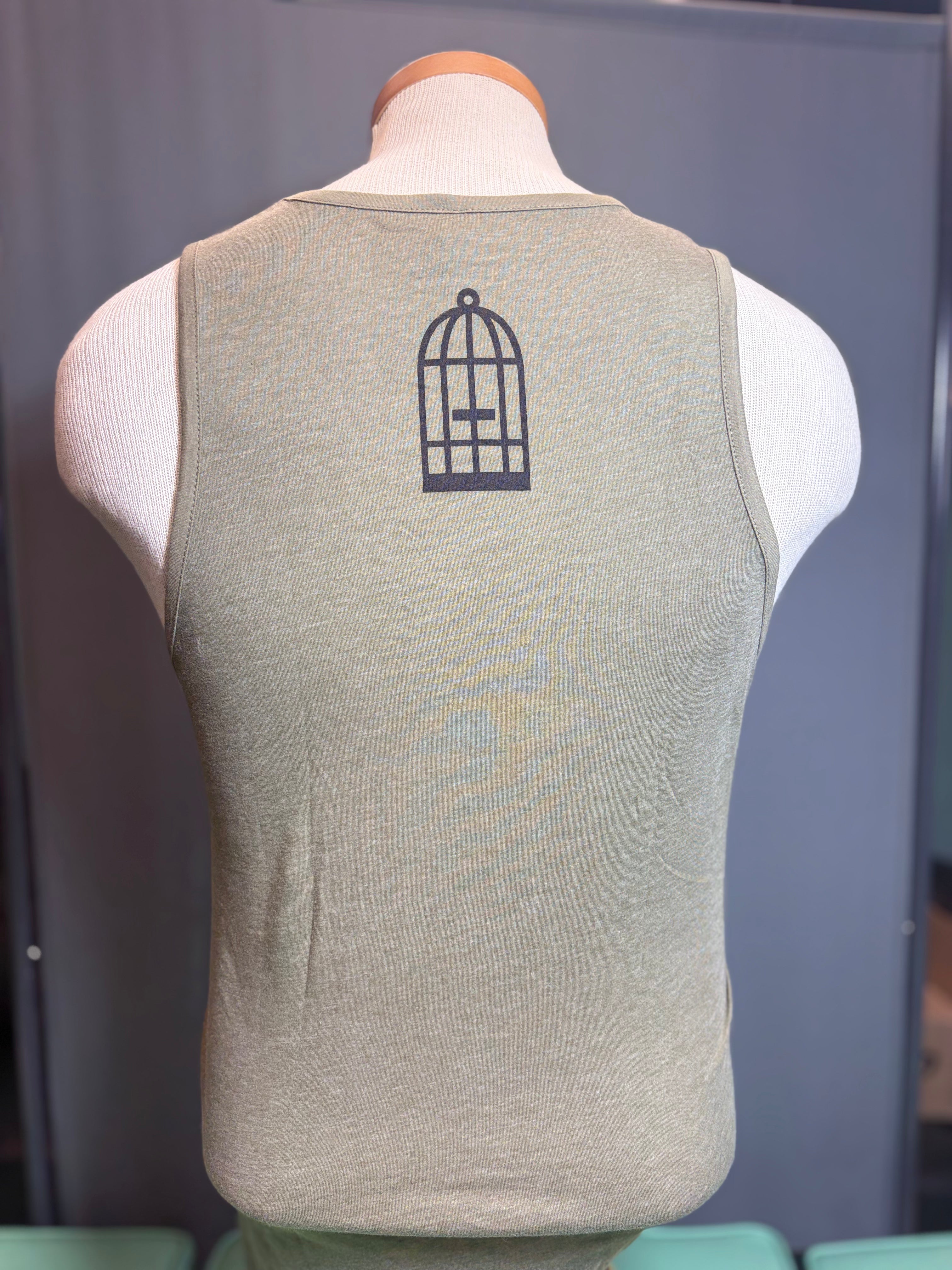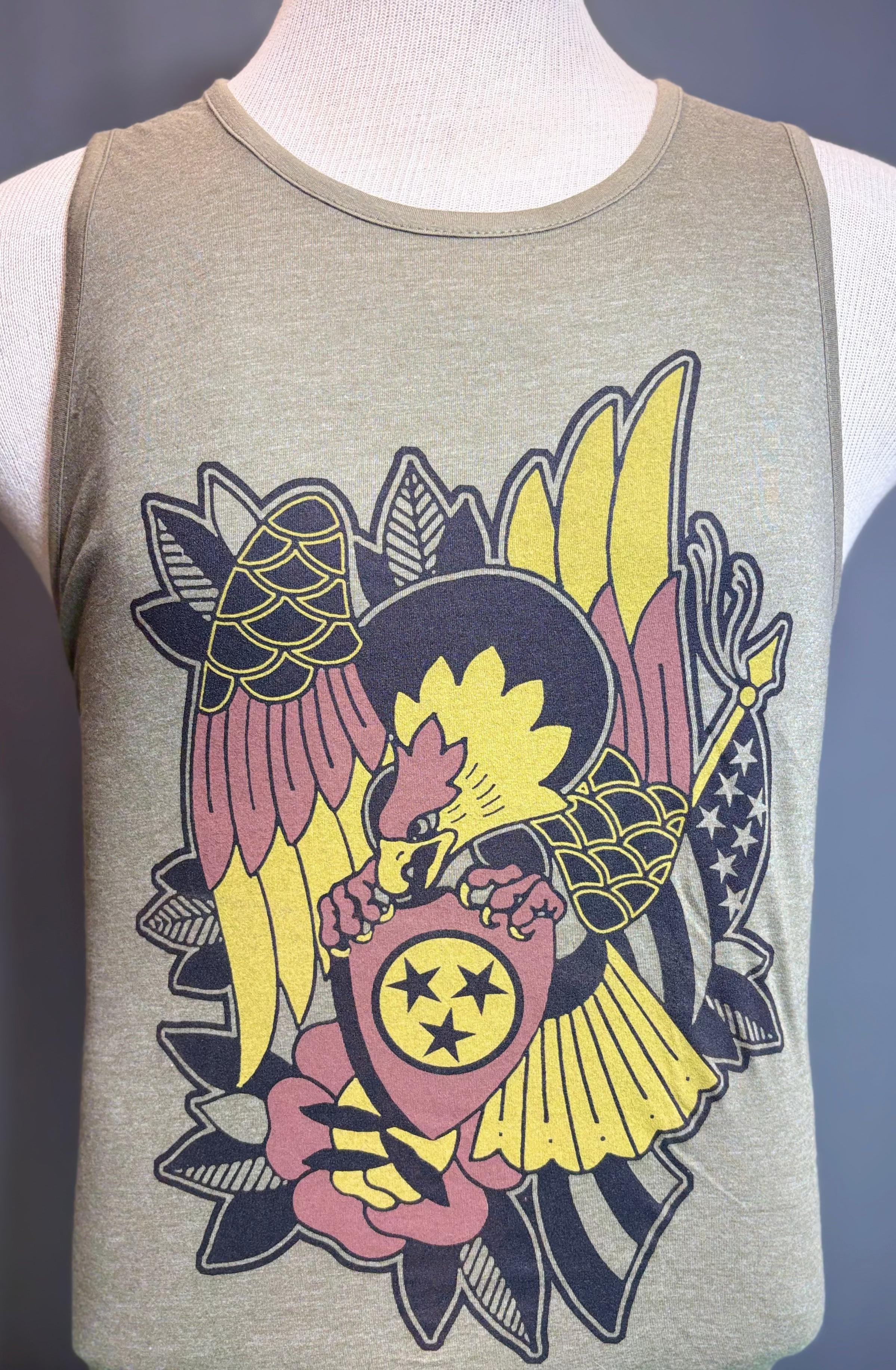 Olive Green Tank top featuring the mighty mighty eagle and tri star emblem